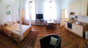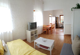 Unsere liebevoll sanierten Ferienwohnungen sind allesamt individuell und komfortabel eingerichtet. Der Saunabereich befindet sich im Gewölbekeller des Gutshauses und ist mit einer finnischen Sauna, Duschbereich, Regendusche und Schwallbrause ausgestattet. Dieser Bereich befindet sich in unmittelbarer Nähe zum Weingewölbe und ist mit seinen Feld- und Naturstein-Mauern dem Ambiente des Hauses angepasst.